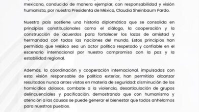 El Gobierno de México condenó y rechazó las acciones militares ejecutadas unilateralmente por fuerzas armadas de Estados Unidos en Venezuela,…