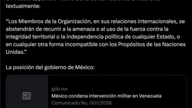 México condena intervención militar de EE.UU. en Venezuela y exige respeto al derecho internacional
