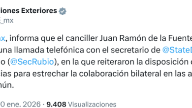 El canciller de México, Juan Ramón de la Fuente, sostuvo este viernes una llamada telefónica con el secretario de Estado…
