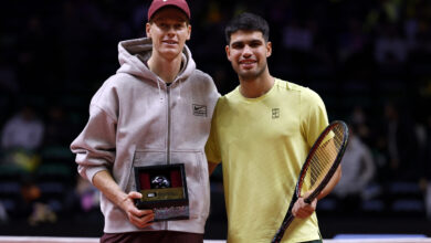 El tenista español Carlos Alcaraz se impuso 7-5 y 7-6 (6) al italiano Jannik Sinner, partido de exhibición celebrado este sábado…