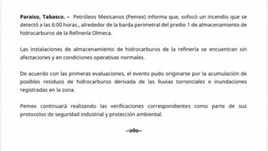 Controlan incendio en el perímetro de la refinería “Olmeca” en Dos Bocas