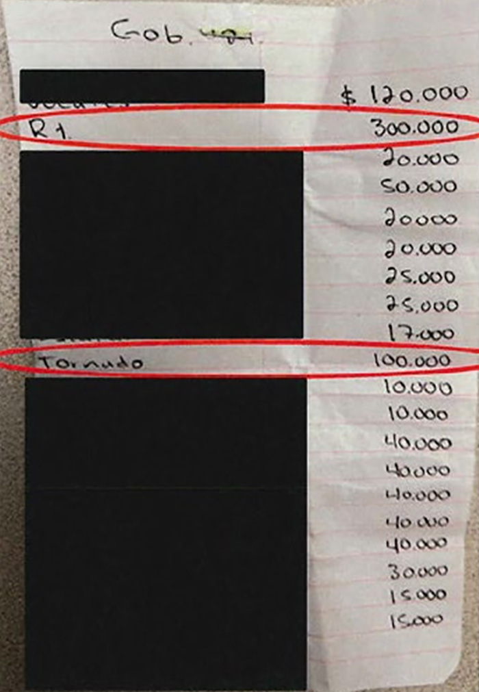“El jefe de plaza de Culiacán suele recibir de los líderes de los Chapitos, cada mes, una caja con una gran cantidad de dinero en efectivo, acompañada de una lista de funcionarios públicos corruptos y de la cantidad que se debe pagar a cada funcionario en concepto de sobornos ese mes”, señala la acusación.