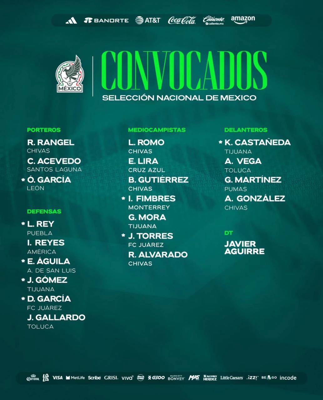 Cabe destacar que la lista cuenta con 12 jugadores de la Liga MX, considerados para integrar la lista definitiva de jugadores que darán inició al torneo el próximo 11 de junio en el Estadio Azteca, ahora Banorte.