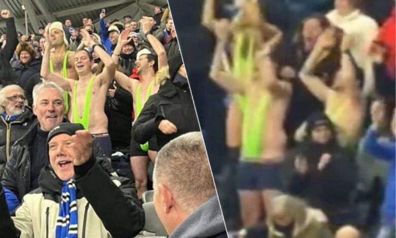 Pese a que los termómetros marcaban temperaturas por debajo de cero grados centígrados, los tres hinchas belgas lucieron el emblemático tanga verde con tirantes por encima de los hombros del personaje humorístico creado en 2006 para la película “Borat: Lecciones culturales de Estados Unidos para beneficio de la gloriosa nación de Kazajistán”.