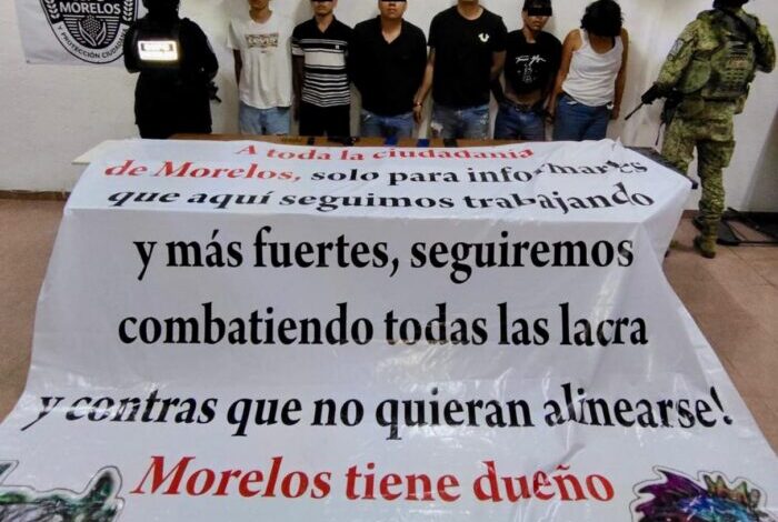 Los detenidos fueron identificados como Trigo “N”, de 22 años; Dilan “N”, de 21; Rubén “N”, de 18; Héctor “N”, alias “Botas”, de 19; Jerson Esaú “N”, de 21, y María Nazaret “N”, de 20 años. Todos tienen domicilio en Tlaltizapán; dos de ellos son originarios del estado de Guerrero.