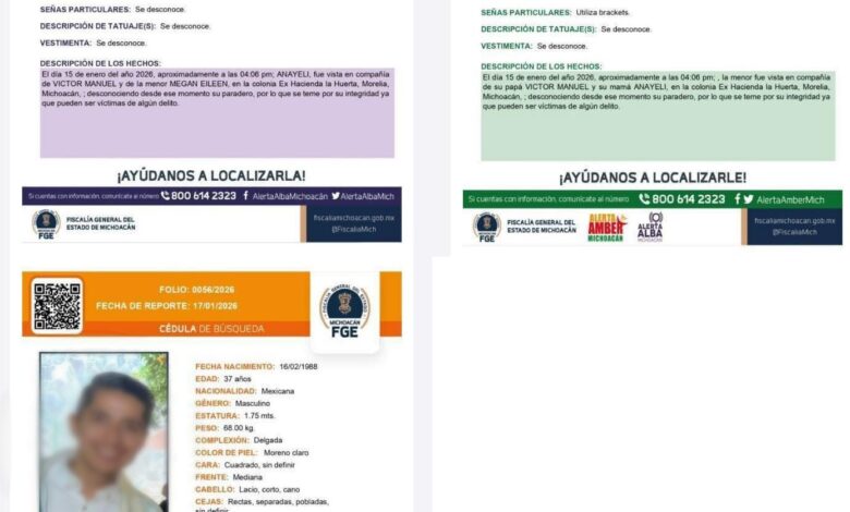 La fiscalía informó que el pasado sábado 17 de enero de 2026, se inició una carpeta de investigación con motivo del reporte de la desaparición de las tres personas; sin embargo, la ficha de búsqueda difundida por la misma fiscalía apunta que la desaparición se registró desde el 15 de enero.