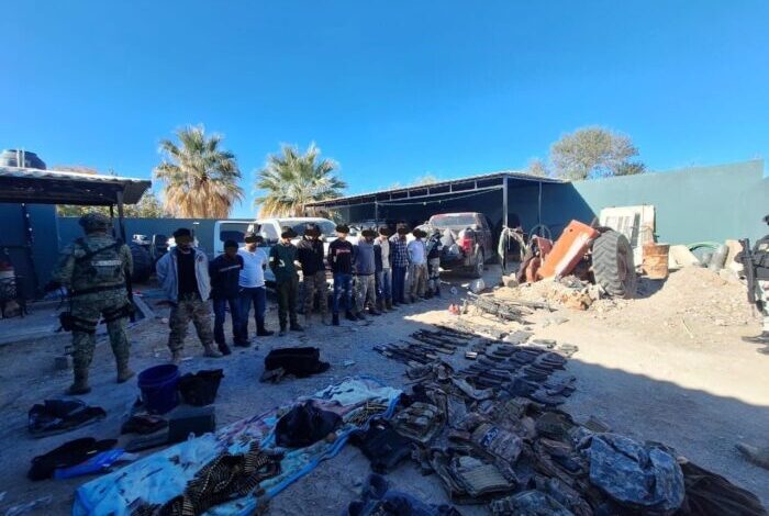 Además de los 11 detenidos, se aseguraron 11 armas largas, dos ametralladoras, dos fusiles Barret, tres vehículos, “diversos artefactos explosivos y un dron“.
