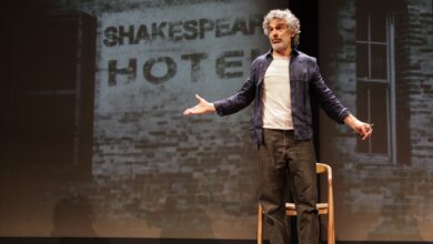 Una silla, dos pantallas, un actor descalzo, un juego de luces con peso narrativo, un monólogo sobre el amor, el…