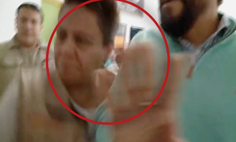 Una mujer uniformada con un chaleco oficial, se lanzó contra los comunicadores y, en medio de la confusión, otra servidora señaló a terceros de empujar, mientras continuaban los intentos por cubrir la cámara.