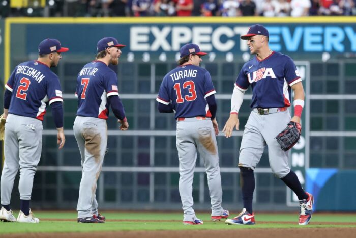 En el partido jugado en el Daikin Park de Houston, Texas, la novena de Estados Unidos aprovechó en la primera entrada el nerviosismo de Josh Naylor, quien no supo cómo atacar un rodado de Kyle Schwarber por su primera base y permitió que Bobby Witt cruzara la registradora para colocarse 1-0.