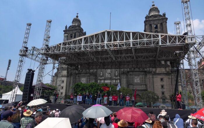 Tras esto, el equipo de audio facilitado por el gobierno capitalino fue instalado en el Zócalo, donde la CNTE llevó a cabo un mitin previo al plantón.