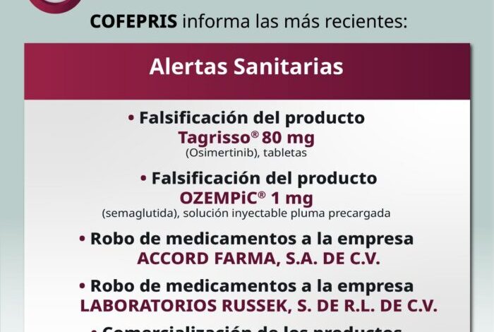 La Comisión Federal para la Protección contra Riesgos Sanitarios (COFEPRIS) emitió una alerta sanitaria tras detectar la falsificación del medicamento OZEMPiC 1 mg (semaglutida), solución inyectable en pluma precargada. La alerta se generó después de que la empresa importadora Novo Nordisk México identificara un lote apócrifo en circulación en territorio nacional.