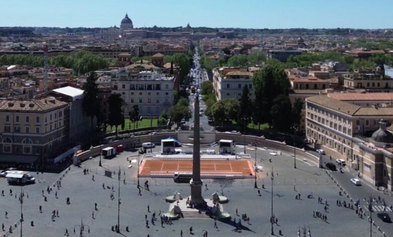 Convierten la Piazza del Popolo de Roma en un escenario para el tenis | Video