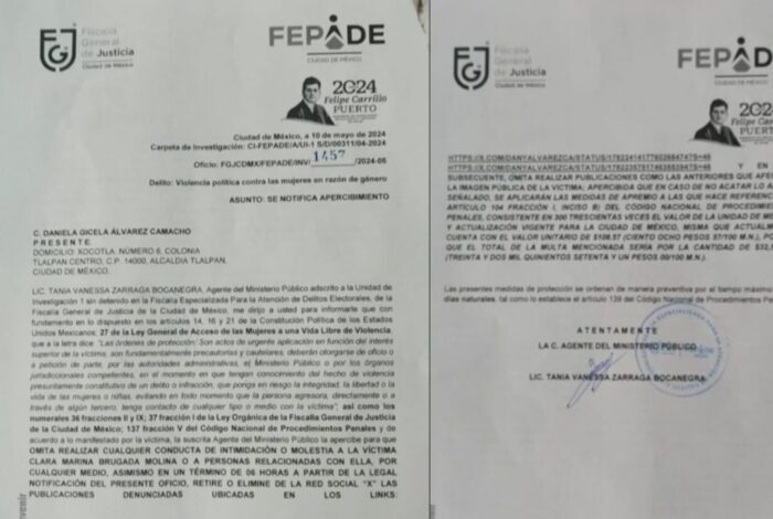 De acuerdo con la notificación, la autoridad ministerial considera acreditado que Álvarez Camacho fue legalmente requerida y notificada el 14 de mayo de 2024 para eliminar en un plazo de seis horas dos mensajes que permanecieron visibles al menos hasta el 17 de mayo, lo que se tuvo como desacato al requerimiento.