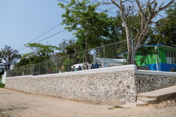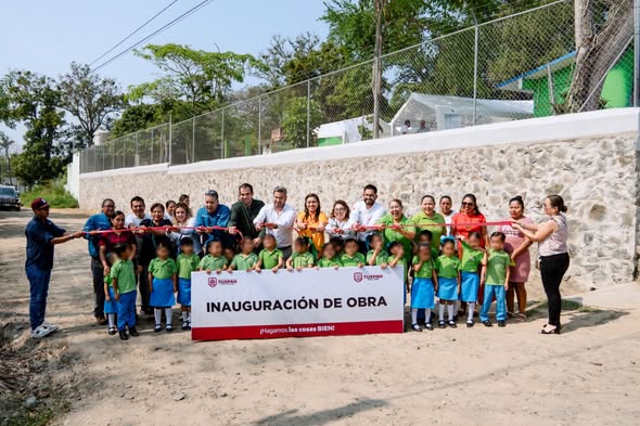 En el municipio de Tuxpan, Veracruz, se ha completado con éxito la construcción de un muro de contención con barda perimetral y drenaje pluvial en el preescolar \\n
