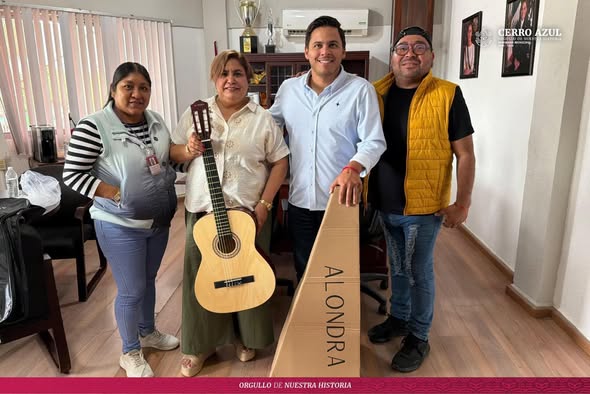 La comunidad de Cerro Azul, Veracruz, ha recibido un importante apoyo para el fomento de la cultura y el talento local. La Dirección de la Casa de Cultura y el taller de rondalla han expresado su agradecimiento al presidente municipal por la entrega de dos guitarras, que se suman a los recursos del taller y contribuirán al fortalecimiento y desarrollo de este espacio formativo. Esta donación permitirá mejorar las herramientas de aprendizaje de los participantes, fomentando la práctica musical y el talento local.