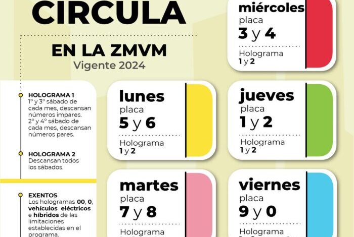 Es importante mencionar que de igual forma no circulan los vehículos con Holograma 1, terminación de placa par, cada segundo y cuarto sábado del mes y foráneos aplicable a todos los sábados.