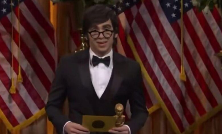 “Él sí incluyó un cheque por otros 10 mil millones de dólares… Este hombre es increíble, bro“, acotó a continuación. Luego, para completar la escena, apareció en escena el presidente Donald Trump -interpretado por el comediante James Johnson-, quien le arrebató el premio de las manos.
