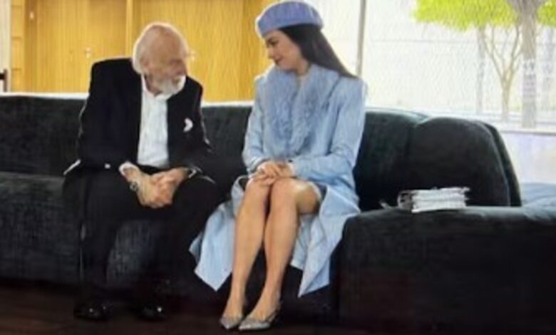 Héctor Alterio interpretó a un anciano que mantiene un diálogo con la princesa Pilar (Anna Castillo), en una escena cargada de emotividad y también humor. Los dos charlan sentados en un sillón enorme en medio de un salón moderno y semivacío.
