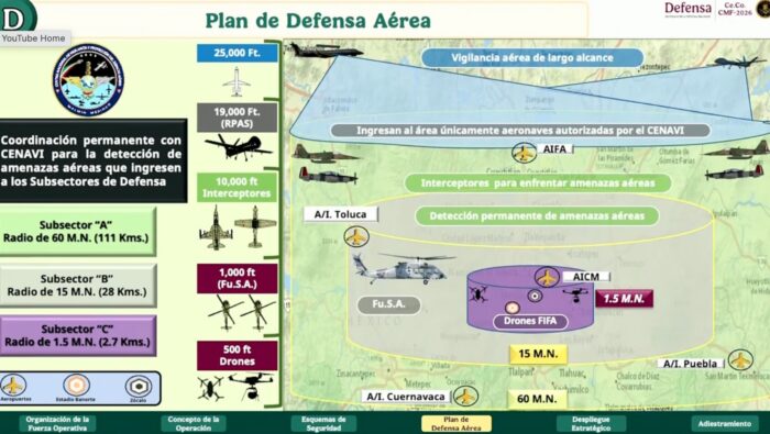En los meses del Mundial (junio y julio) las fuerzas militares coordinarán los vuelos para que las zonas de “libre vigilancia” aérea puedan estar disponibles para evitar “incursiones no deseadas”.