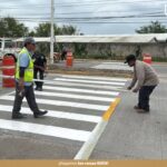Entre los lugares donde se están realizando estos trabajos se encuentran el Libramiento Adolfo López Mateos, esquina con calle Libertad, frente a la escuela Nissan, y el Boulevard Demetrio Ruiz Malerva, frente a las instalaciones del DIF Municipal. La implementación de estos pasos peatonales pintados no solo busca mejorar la visibilidad y la conciencia vial, sino también reducir el riesgo de accidentes y promover un tránsito más ordenado y seguro.