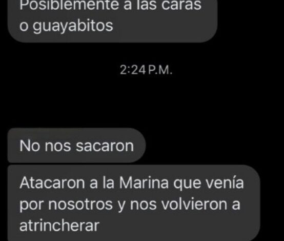 Según los testimonios, un convoy de la Marina intentó ingresar para evacuar a los civiles; sin embargo, afirmaron que “atacaron a la Marina que venía por nosotros y nos volvieron a atrincherar”.