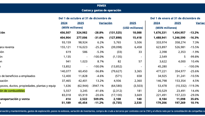 Tan solo en 2025, la empresa mexicana reportó la pérdida de 23 mil 491 millones de pesos, lo que representó un aumento de 14.4 por ciento con respecto a 2024.
