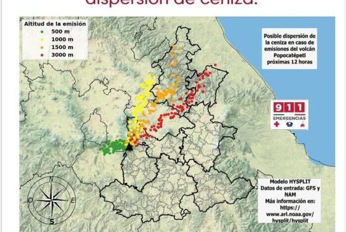 Asimismo, informó que el pronóstico de viento prevé que, en caso de emisiones de ceniza, la dispersión podría dirigirse al oeste y noreste, sobre las regiones de Atlixco, Angelópolis, Sierra Norte y Sierra Nororiental, así como hacia Tlaxcala, Veracruz, Estado de México e Hidalgo.