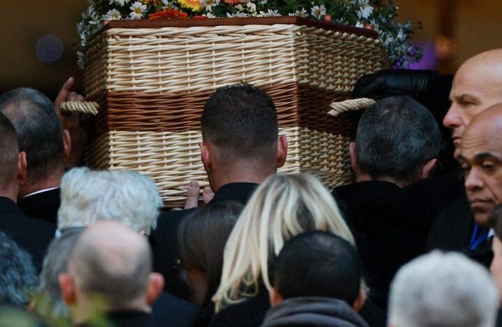 El cajón con los restos de Brigitte Bardot, al ingresar a la ceremonia. Foto: ReutersLuego de la misa, se celebrará el entierro en la más estricta intimidad en el cementerio marítimo de la ciudad. Y más tarde, habrá un momento de recogimiento abierto al público en una colina aledaña.