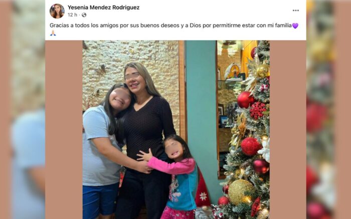 Los reportes, compartidos por medios locales y nacionales, como El Universal, están acompañados de una publicación de Méndez en su cuenta oficial de Facebook, en el cuál agradeció los “buenos deseos” y a “Dios” que le permiten “estar con mi familia”.