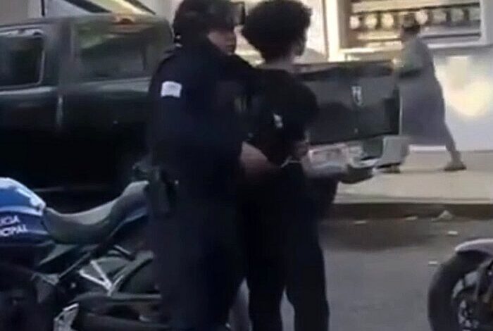 De acuerdo con lo observado en videos difundidos en redes sociales, elementos de la Policía Municipal de Lázaro Cárdenas ingresaron al plantel y localizaron al presunto agresor, un joven de complexión delgada, cabello rizado, vestido completamente de negro y con una sudadera con un estampado blanco visible.