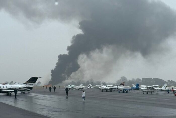 Imágenes difundidas desde el aeropuerto mostraron la aeronave envuelta en una gran bola de fuego tras el impacto.