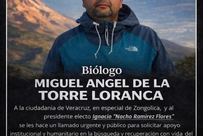 A 55 días de su desaparición, no hay rastro del activista ambiental y biólogo Miguel Ángel de la Torre Loranca, privado de la libertad el 21 de noviembre de 2025 en la localidad de Comalapa, en la Sierra de Zongolica, Veracruz.