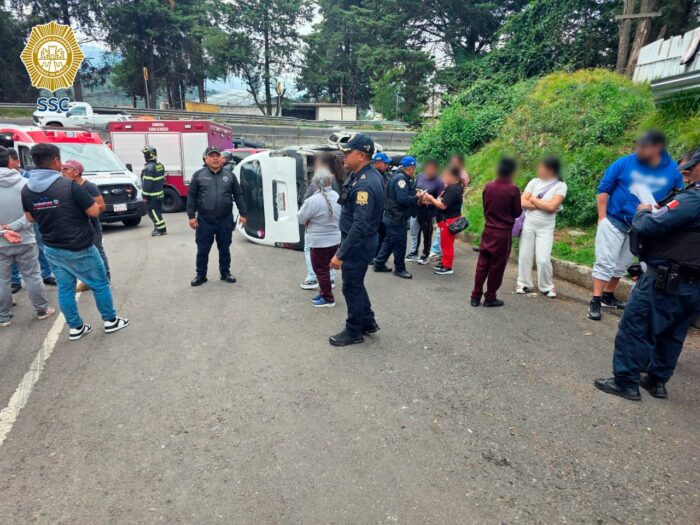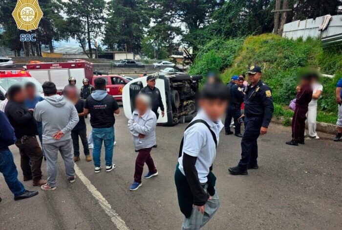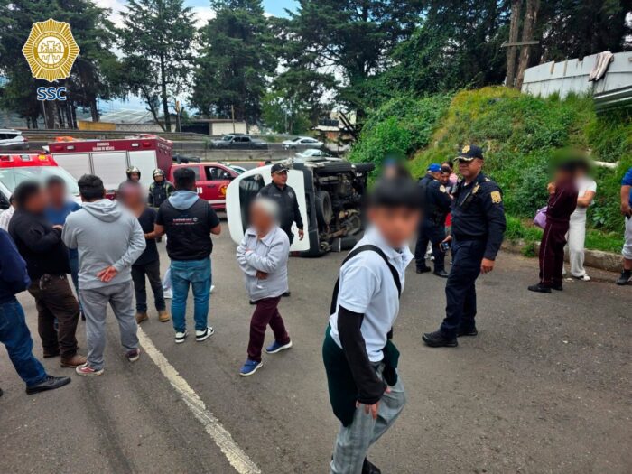 Al menos 14 estudiantes resultaron lesionados luego que la combi de transporte escolar en la que viajaban en la alcaldía Cuajimalpa.