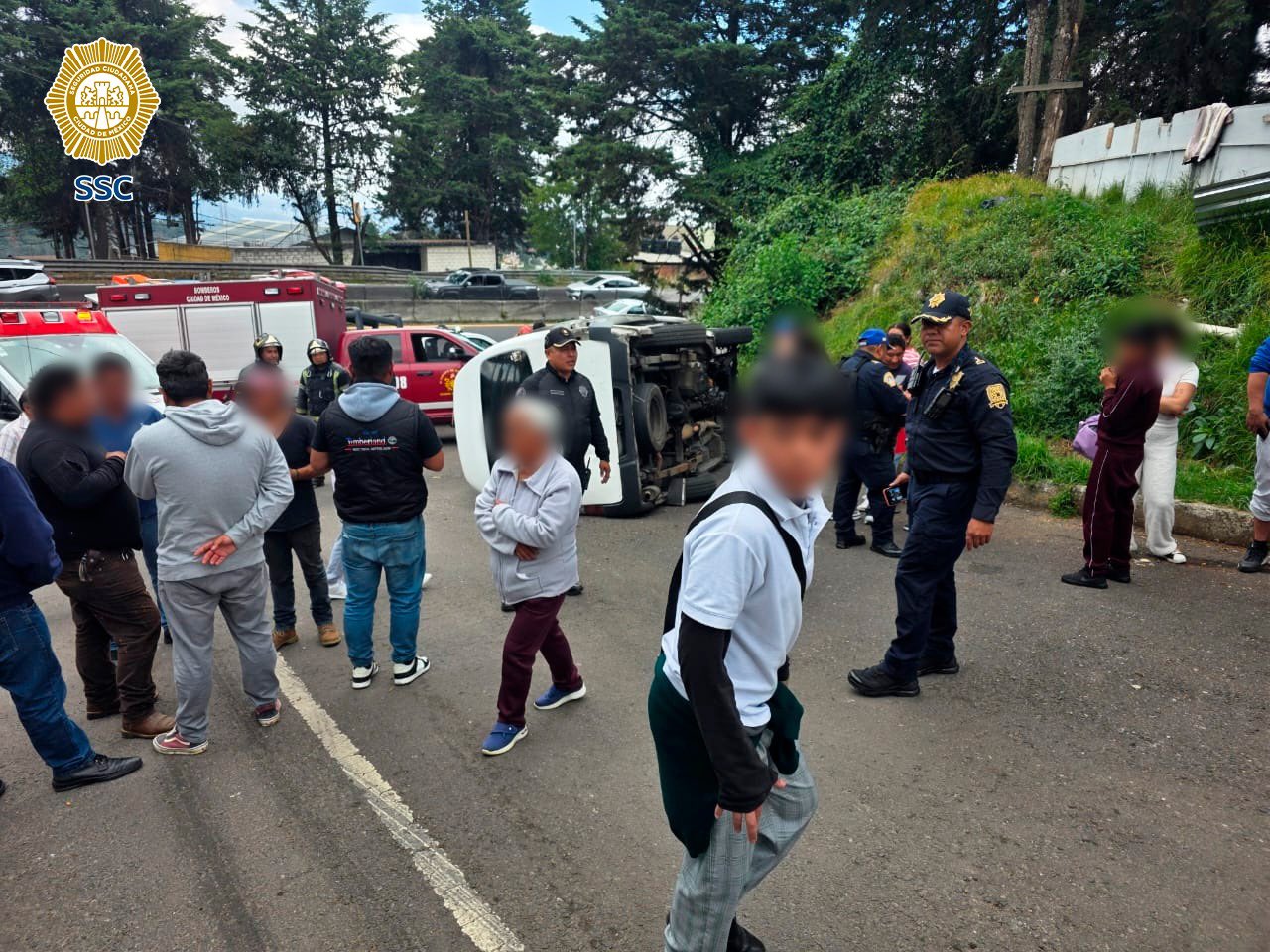 #AlMomento, informo que atendemos la volcadura de un transporte escolar en la Colonia Las Lajas, Alcaldía Cuajimalpa. En el lugar, 15 alumnos resultaron lesionados y fueron atendidos por personal paramédico. Continuamos laborando en la zona para liberar la vía pública.… pic.twitter.com/UvydoZ1kGP
